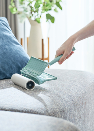 ケースがついて、自立する粘着ローラーです。ケースはパッと跳ねあげられて、スムーズに掃除ができます。