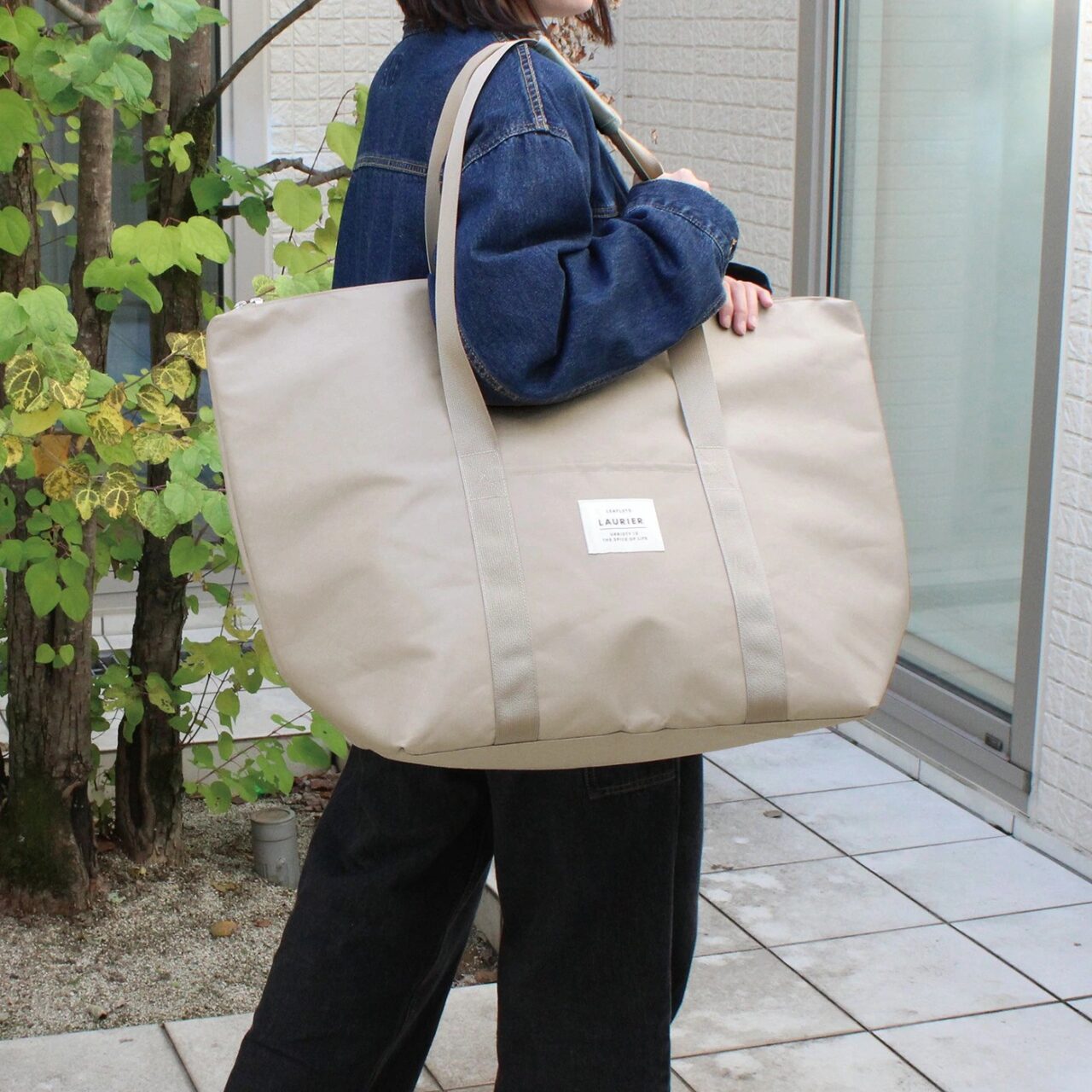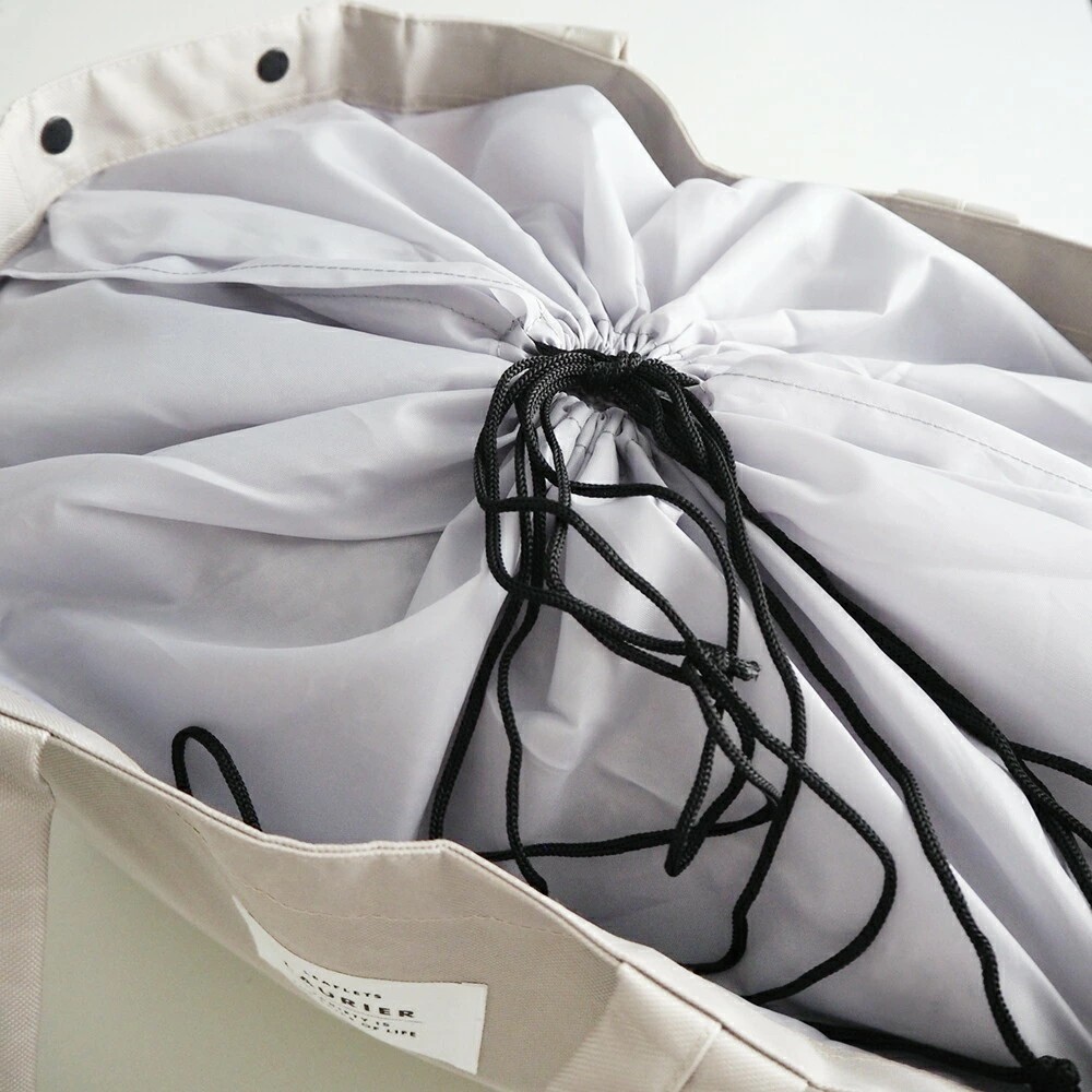 たくさんお買い物をしても安心な約20Lの大容量。開口部は巾着になっているので、さっと開け閉めできて中身も見られず安心です。