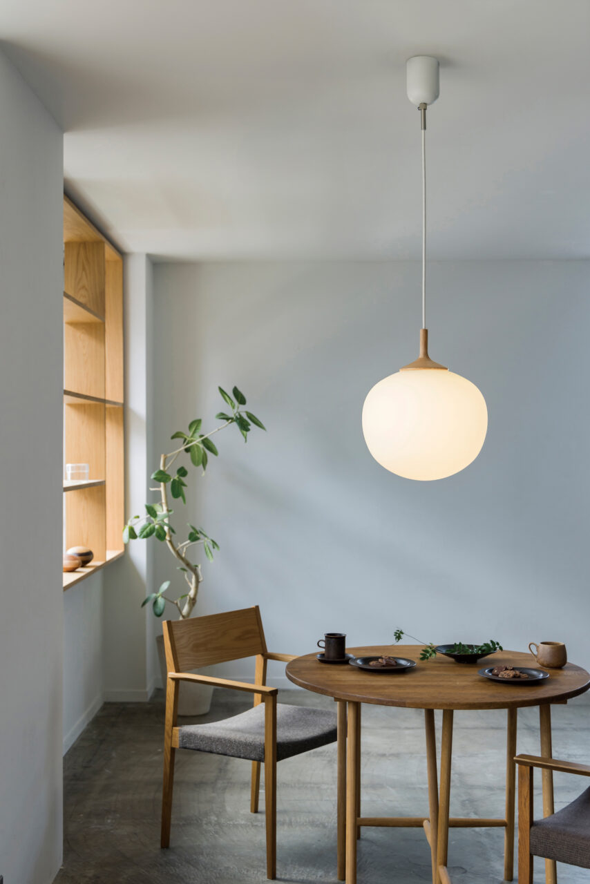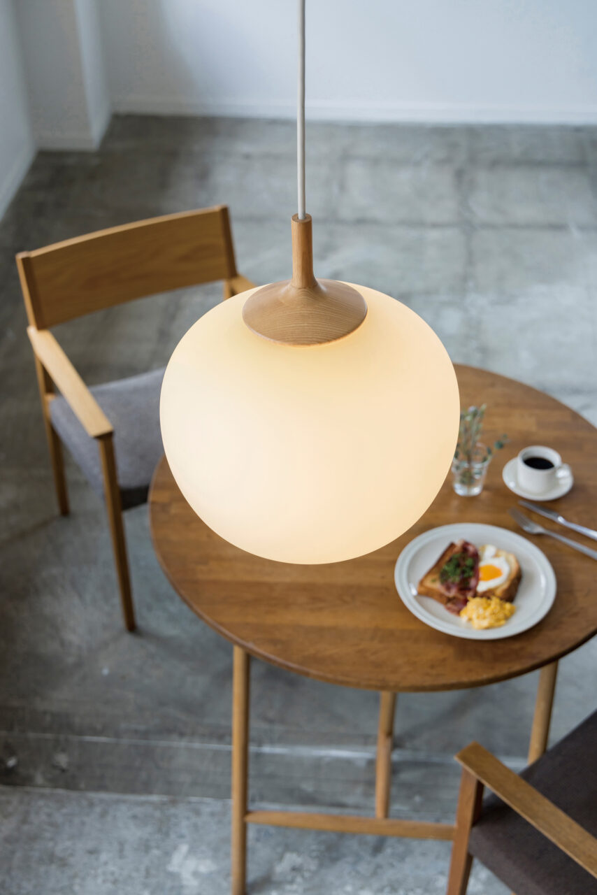 豊かなふくらみとフロストホワイトの柔和な表情が包み込まれるような素朴なあかりを広げてくれます。