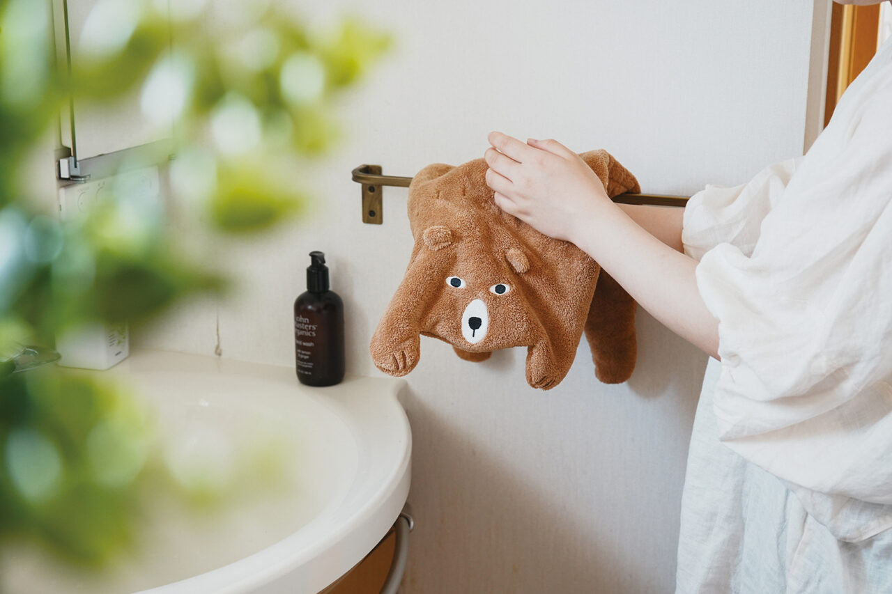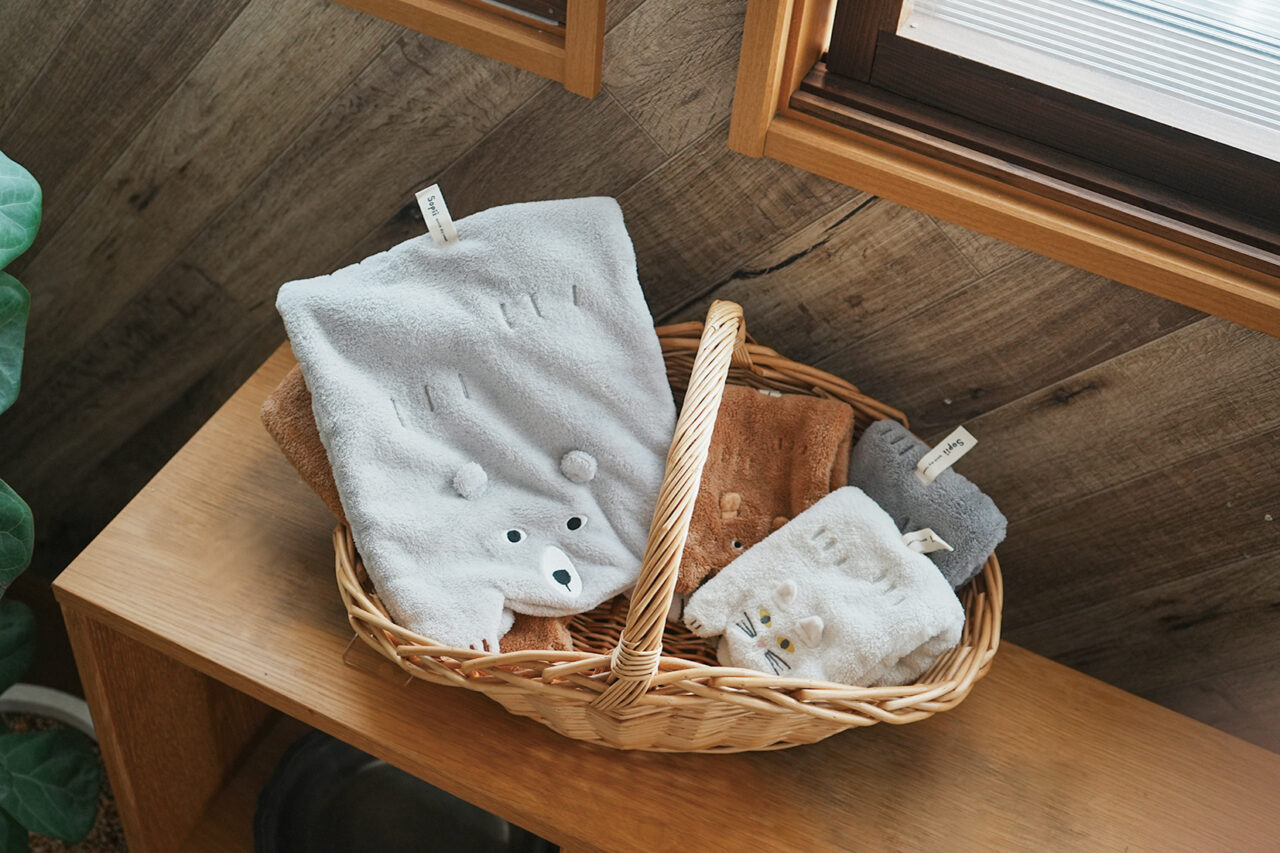 引っ掛けておけばちょこっと拭くのに便利なサイズなので、大人も子供も手を拭くのがちょっと楽しくなりそう♪