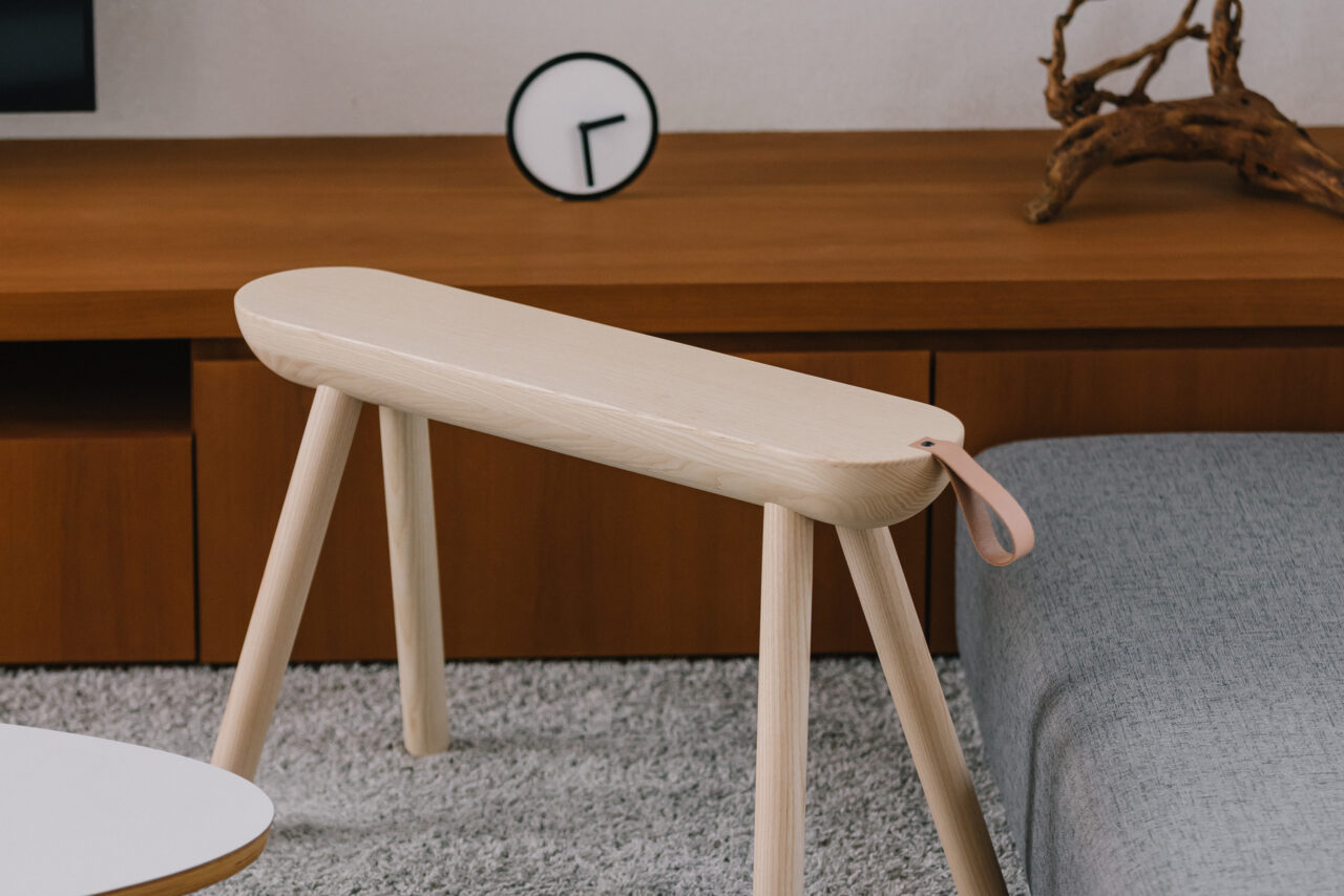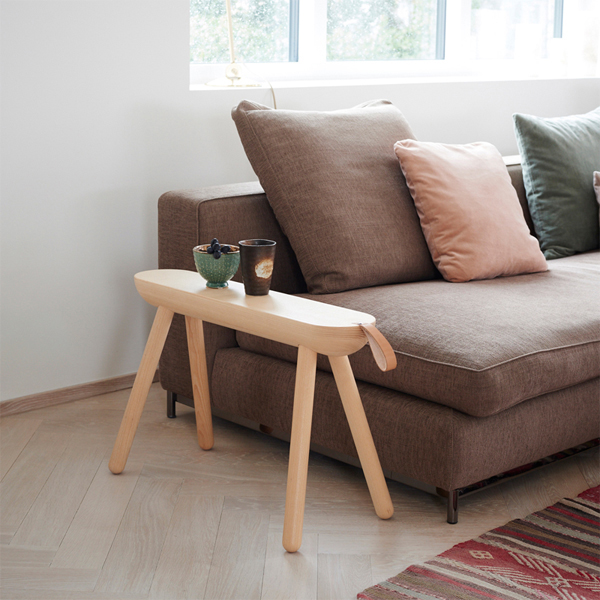 ソファ脇に置いて、サイドテーブルにもなり、もちろん、ベンチとしても使えるので、玄関に置いて靴やブーツなどの脱ぎ履きの際に座ったりもしています。