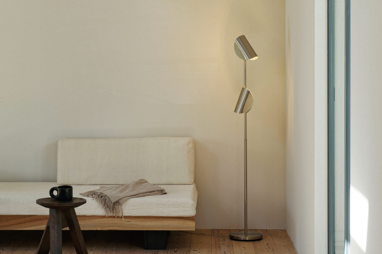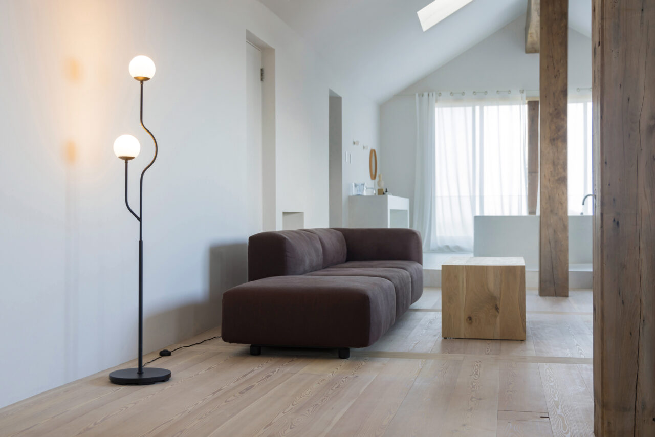 壁に陰影を描いて光で彩るフロアライトは、空間に深みを与え、ドラマチックな変化をもたらします。