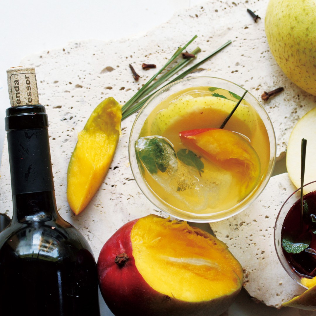 ワインを注ぎ入れ数時間置くと、フルーティーなサングリアが出来上がります。冷やして炭酸水やオレンジジュースで割って飲むと、とてもおいしいです。ワインは赤でも白でもどちらでもお好みでお楽しみください。