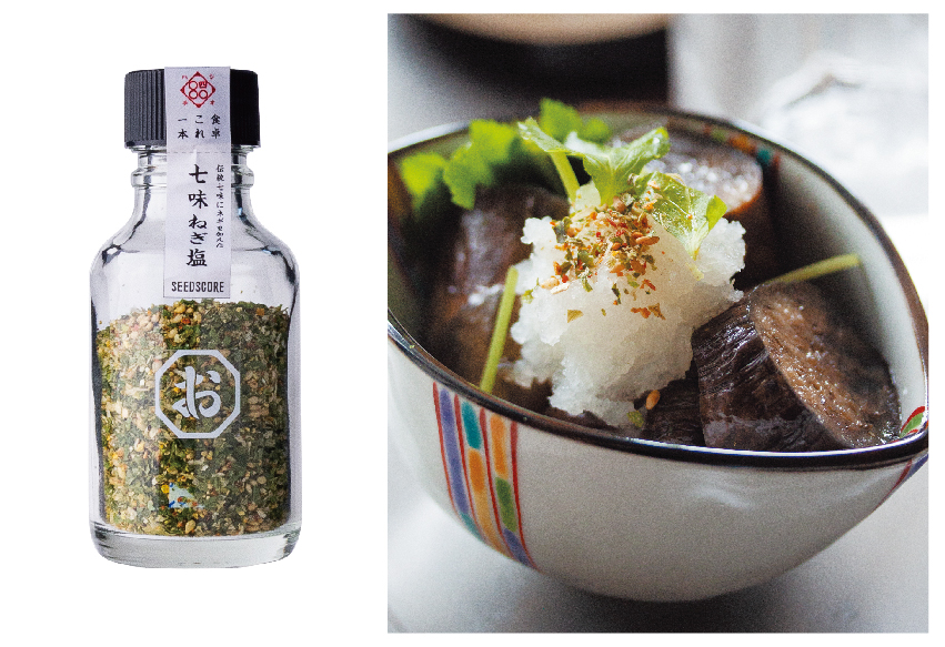 伝統七味に乾燥ねぎを加えてブレンドした塩。
