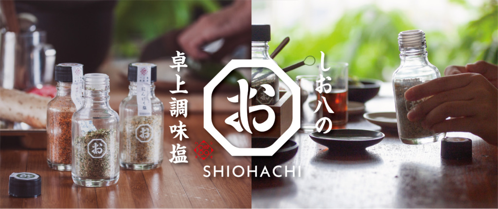 「しお八」シリーズは「いつもの料理にサッと一振りするだけで、様々な料理の味足しや味変えに」お使いいただけます。
