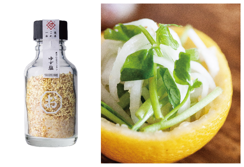 爽やかなゆずの香りが食欲をそそります。豆腐、白身魚、野菜、鶏肉などの淡白な味を引き立てます。鍋や蒸し物の味付けに、フライや天ぷらの付け塩に。