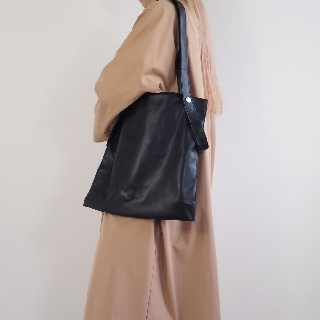 光沢の少ないスムース素材の合成皮革のこのトート。