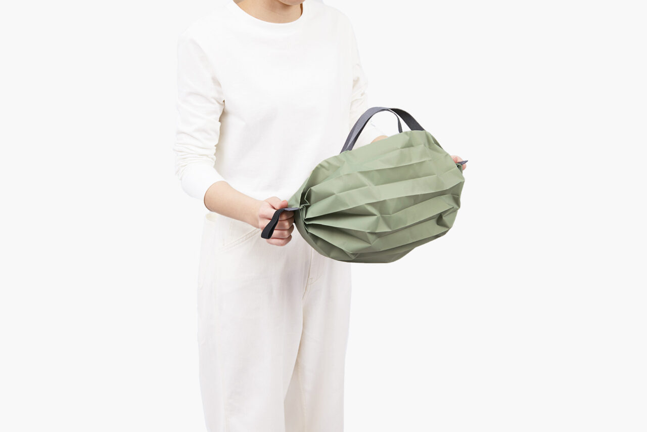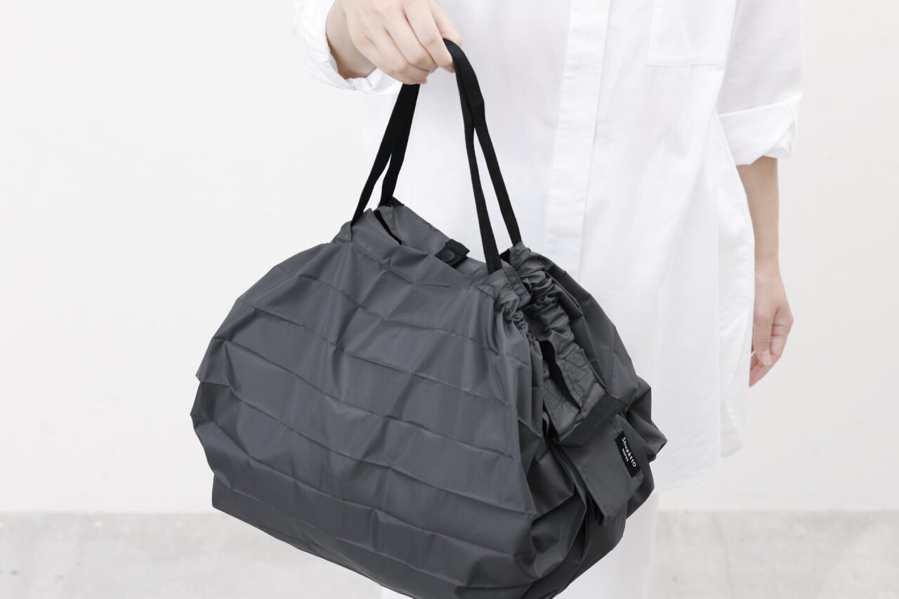 両端を引っ張るだけで一気にたためるバッグ。マーナの Shupatto