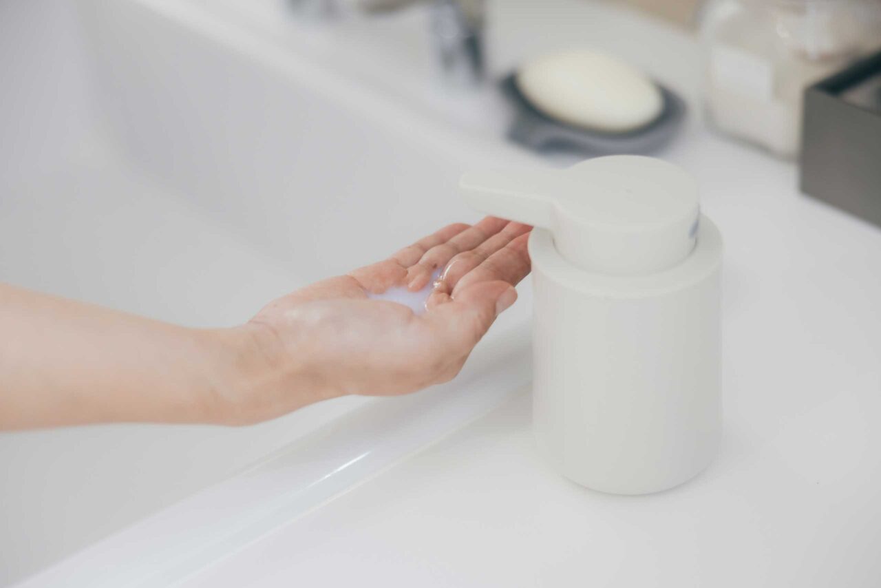 ポンプを押さずにセンサーに手を近づけるだけで、高感度センサーで感知し、自動でソープが出てくるディスペンサー。