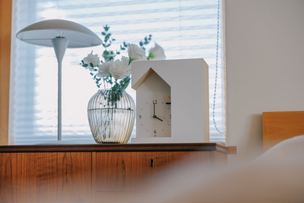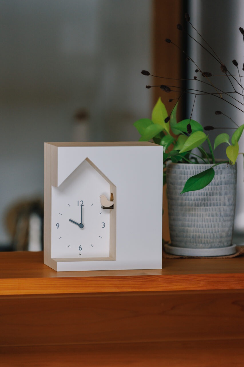 四角い箱から鳩時計がくり抜かれたような、シルエットが凹んだ鳩時計。