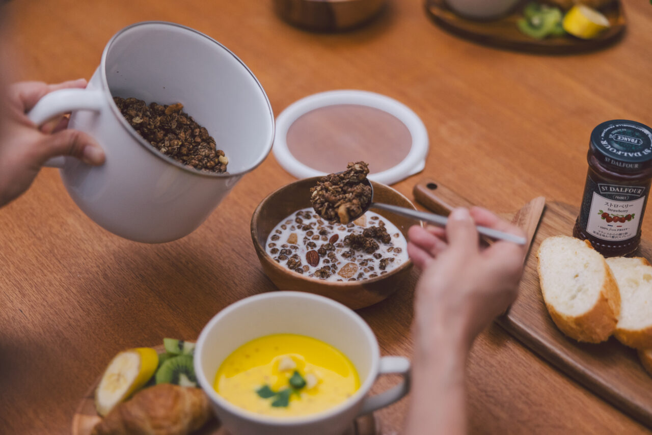 それはホーロー製品の特性である「雑菌が繁殖しにくい素材」という事です。ホーロー製品はガラス質の表面で雑菌が繁殖しにくく長期間の保存に適しています。保存した食材の味の変化がほとんどありません。使わずに収納している時でもニオイ移りも無いし、清潔でとっても良いです。