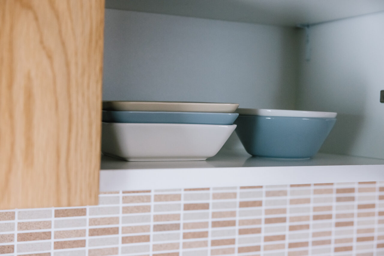第二次世界大戦の勃発から3ヶ月後に、突如ソビエト連邦がフィンランドに侵攻した冬戦争が勃発しフィンランドは敗戦。フィンランドが国土の10分の1をソ連に割譲させられたものの、独立を守り抜いた戦争でした。1941年当時のフィンランドは敗戦後で物資が不足しており、キルタ(Kirta) はコンパクトで幾何学的なデザインによって小さなキッチンでも収容しやすい形状で、かつ従来の食器は12セットでそろえる習慣があったのですが、キルタは古い食器と組み合わせ可能になっており、人々のライフスタイルに影響を与えるデザインでした。