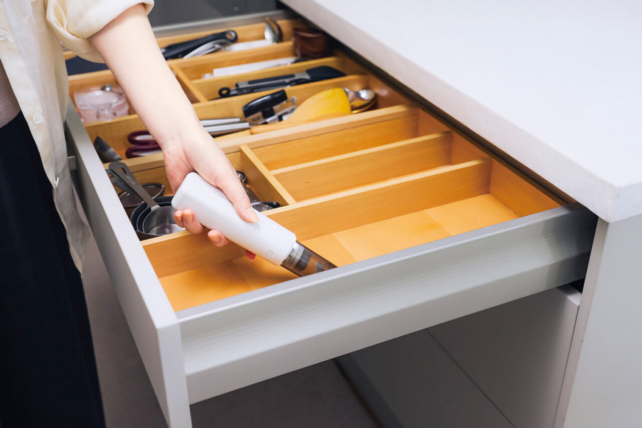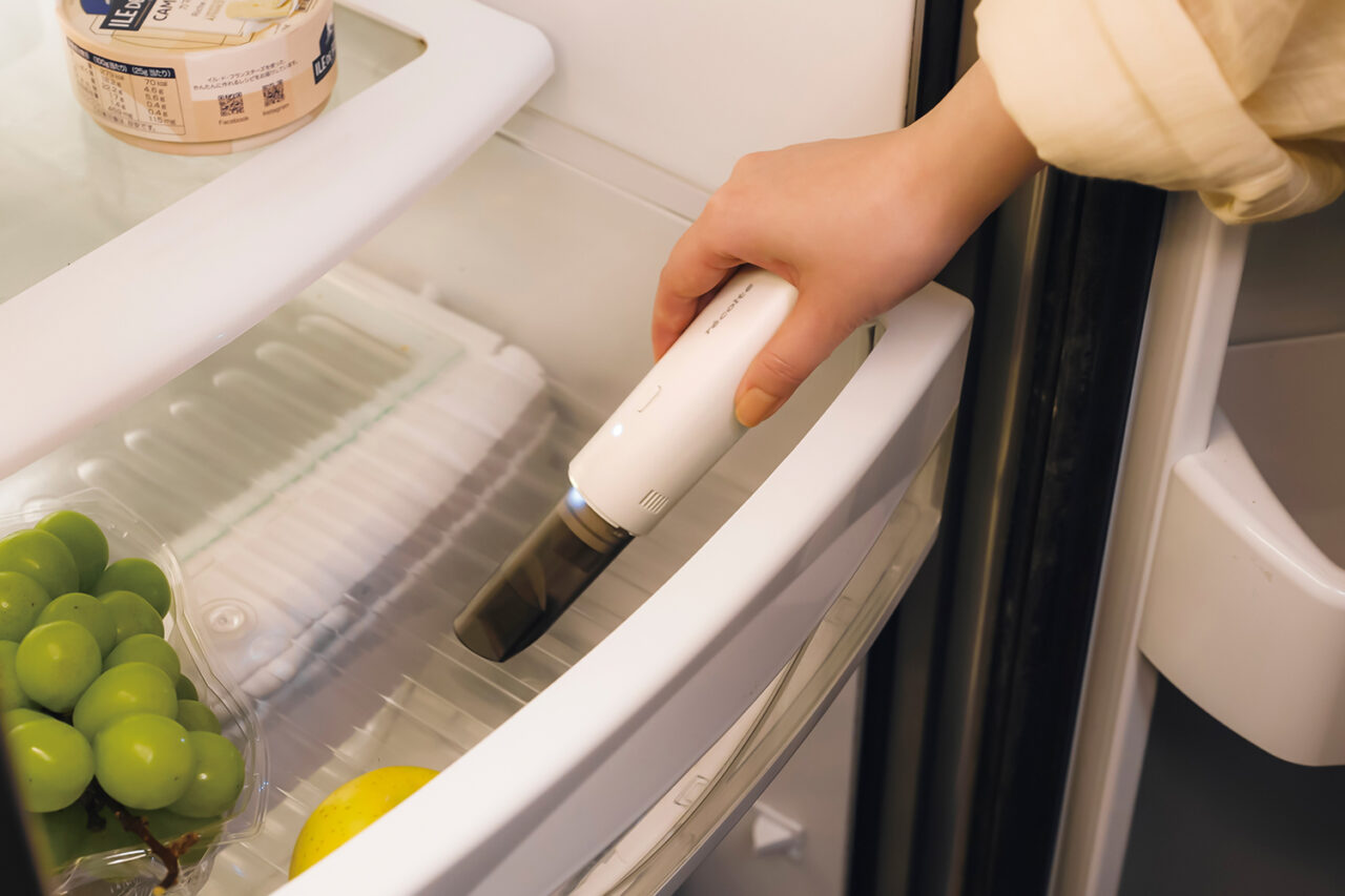200gと軽量ながら、約2,000Pa(満充電時)とパワフルな吸引力。ホコリや食べかす、冷蔵庫の隅や髪の毛を吸うには十分な吸引力です。