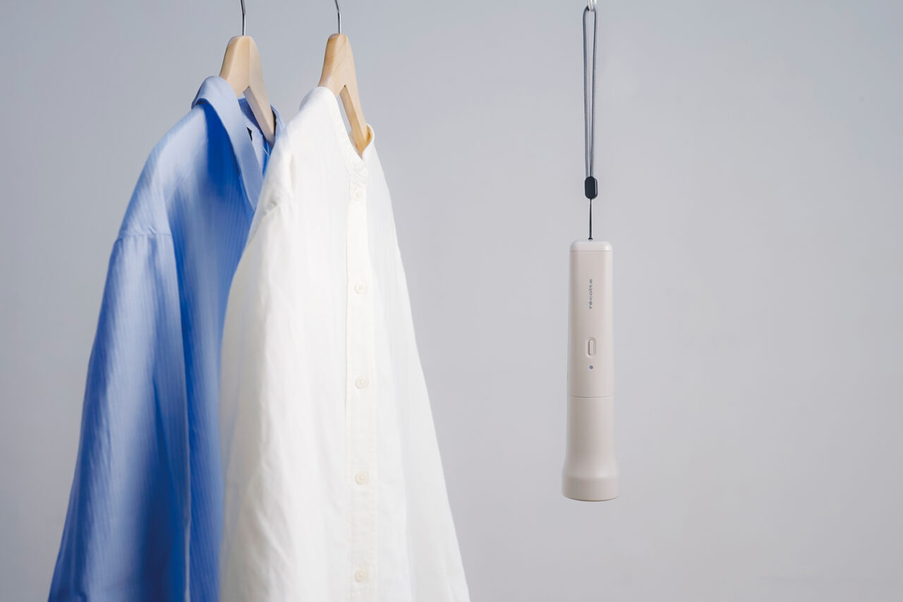キャップ含めて径は5cm(本体のみでは4cm)、高さも約22㎝と500mlのペットボトルくらいの高さなので、場所を取らず棚や引き出しの中でもスッキリしまうことができます。キャップは本体にストレスなく装着できるマグネット付き、手に取りやすい構造になっております。ストラップが付属しており、S字フックや、クローゼットのフックにかけて収納することもできます。